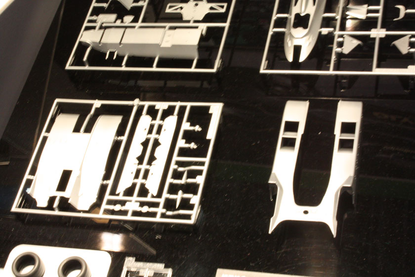 ハセガワはサイドポンツーン上の開口部が一体成型されていますが、タミヤは別パーツ化されています。
