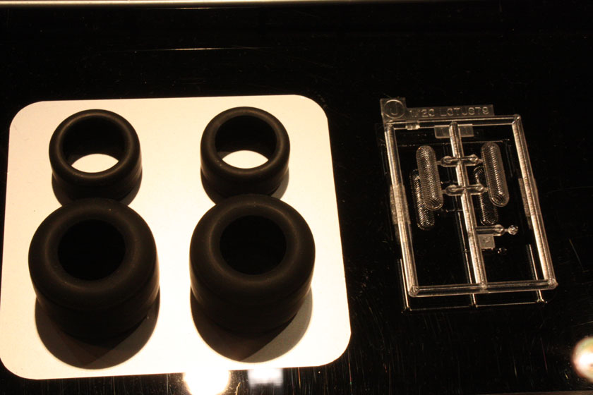 タミヤもタイヤは新規に作ったようですね。過去の70年代マシンのタイヤはグッドイヤーのロゴがモールドされていましたが、今回はなし。