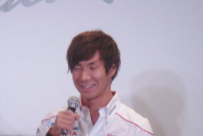 ↑カムイ選手。なかなかひょうきんな奴ですね。今年のGP2では不運もあって、ちょっと寂しい結果に終わってしまいましたが、それでも本人は明るいですね。山科代表とのやり取りにも臆することがありませんでした。F1に最も近い日本人ドライバー、是非頑張って貰いたいです。