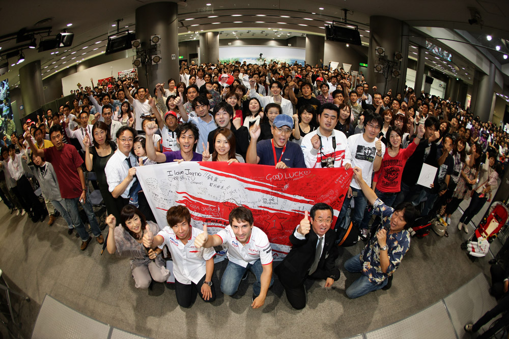 当初、トヨタのドライバー、トウルーリ、グロッグ、カムイの3人とも出席すると発表されていましたが、トウルーリは「体調不良」を理由に欠席。基本的にミナルディから這い上がってきたドライバーはもれなく応援するミシマとしては、ちょっとガッカリ。でもグロッグもジョーダンからデビュー後、数年間もF1を離れざるをえない状況に追い込まれつつ、また這い上がってきた「苦労人」と言うイメージがありますから、好きな部類のドライバーです。カムイは日本期待の若手ですから、当然楽しみでした。
