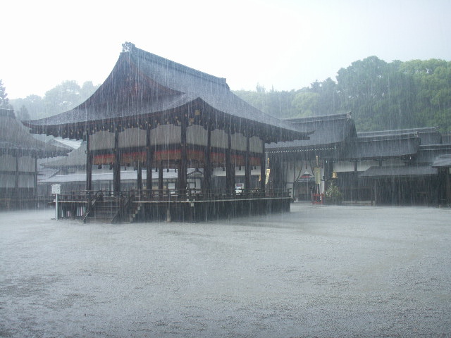 糺の森を歩いているときから雲行きが怪しかったのですが、境内を散策中についに雨が降り出してしまいました。しかも、降り出したと思ったらいきなり半端ではない土砂降りに。
