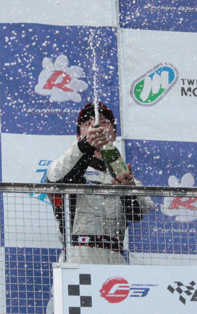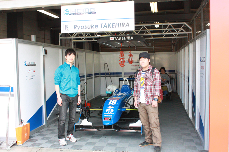 全日本F3選手権もてぎラウンド、Nクラスにスポット参戦した武平選手(隣は我が家の次男坊)です。昨年はF4で大活躍の武平選手ですが、F3は初体験。金曜日に初めてF3マシンに乗り、土曜日には即レース、しかも土日二日間で3レースを戦うという超ハードスケジュール。さらに、チームもスポット参戦。決して恵まれた状況ではない中、デビュー戦でいきなり3位表彰台を獲得し、続く二戦も2位、3位とすべて表彰台に登りました。これははっきり言ってめちゃめちゃ凄いことなんですが、本人は勝てなかったかとを悔しがり、最終レースを戦い終えて戻ってきたときには憮然とした表情で、周囲を寄せ付けないムードを漂わせていました。「最初から速い」「強烈な上昇志向」「少ないチャンスを生かす」と言ったレーサーとしての資質が素晴らしいことは間違えないです。