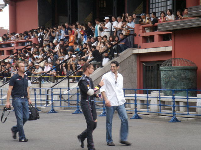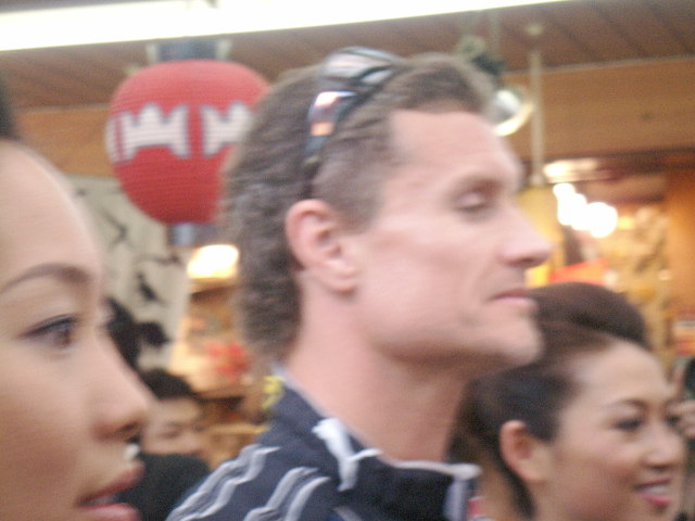芸者ガールに囲まれてご機嫌そうなデビクル。目の前を通過していきました。いやあ、実物も四角い顔やねえ。この後も最後までイベントに参加していたデビクル、気軽にサインに応じたりしていてなかなかいい奴って感じでしたよ。日本GPまでまだ1週間以上あるのに、こんなに早く来日してイベントに参加するなんて、エライ!私が大好きな90年代の生き残りドライバー、まだまだ頑張って欲しいものですね。