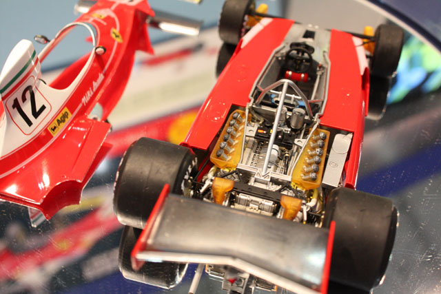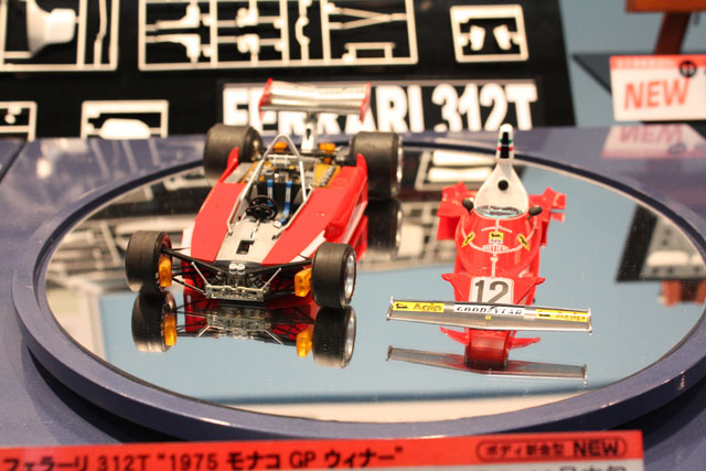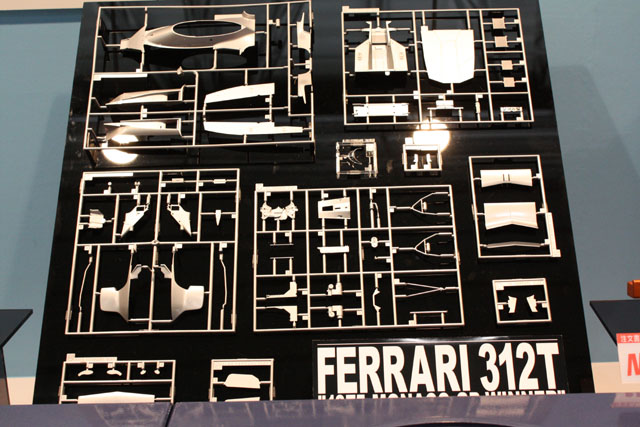 312T2のエンジンパーツなどはそのまま流用、カウルなどを新規パーツとして開発した312Tです。これもなかなか良さそうですね。デカールの白がかなり透けているのが気になったので、ハセガワの人に聞いてみました。「これはテストショットのプリンタデカールです。」とのこと。一安心です。その方とはその後かなり話しこんでしまい、いろいろと次回作の探りも入れたのですが、やはり教えてはもらえず。でも、いろいろ検討はしているみたいです。開発ペースが遅いのが気がかりですが、頑張って欲しいですね。