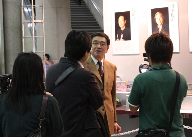 石坂浩二さんがきていました。ちょうど、ミシマと石井師がお世話になったフジテレビのOさんが来ていて、インタビューしていました。今後のプラモつくろうの中で使われるのでしょう。