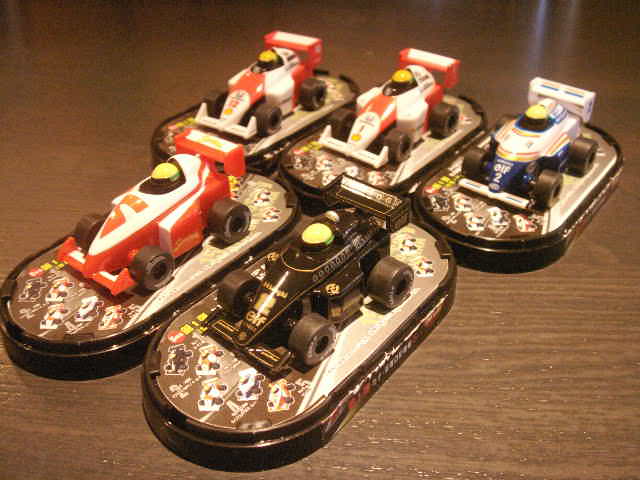 今回は98T、MP4/4、MP4/5、FW16に加え、謎の一台が・・・いったい何なんだろう、と思いながらも買ってしまいましたが、セナの慈善事業のキャラクターである「セニーニャ」をモチーフにした架空の一台でしたよ