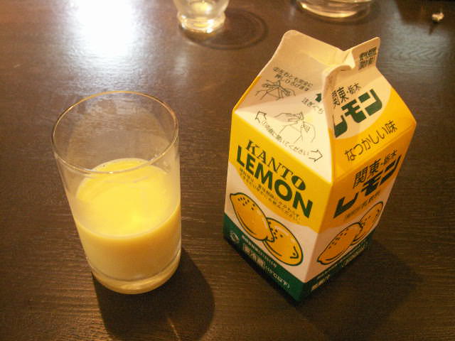 まるで黄色い絵の具を溶かしたような色のレモン牛乳、飲んでみると意外といけます。良く冷やして飲んだ方がイイね。自宅にも持ち帰り、息子たちにも飲ませましたが概ね好評。女房は「凍らせたらおいしいハズ」と言ってこれでアイスキャンディーを作っていました。