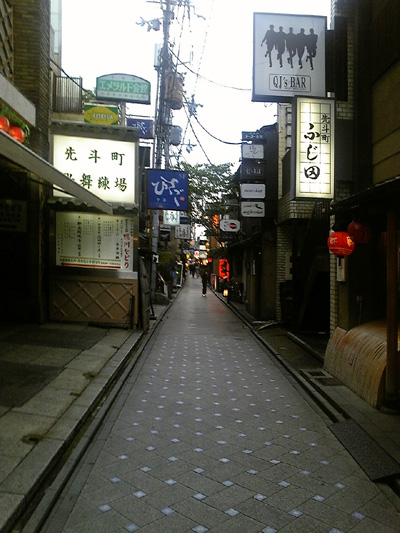 所謂川床のある飲み屋街です。川床へは行きませんでしたが、風情のある町並みは、自然とゆっくり歩きたくなる異空間。普段は新宿や池袋の街で飲んでいるミシマにとってはとっても新鮮でした。舞妓はんには遭遇できなかったけどね